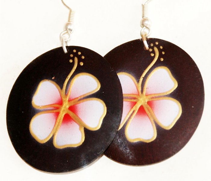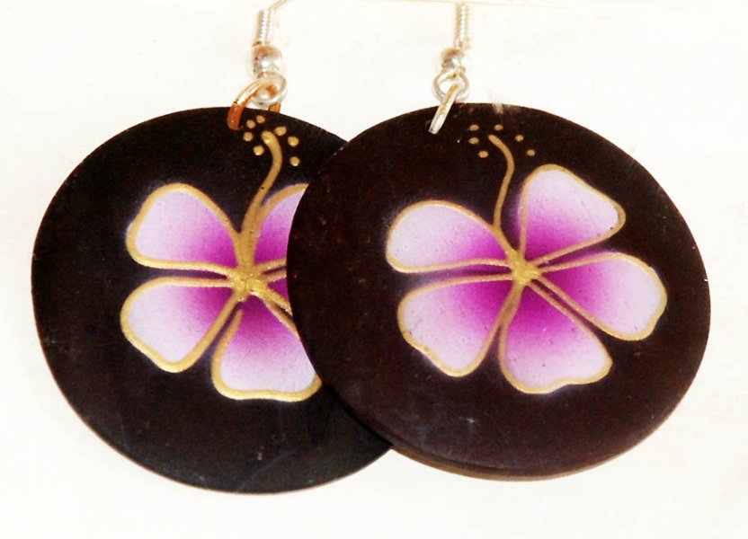 Náušnice z exotického dřeva ručně zdobené motivy květin. Velikost náušnic 4 cm nebo 2,5 cm. V barvě fialové, červené a modré. Cena 69 Kč/pár náušnic (4 cm) nebo 59 Kč (2,5 cm). K dostání také jako set s náhrdelníkem a prstenem.