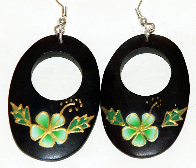 Náušnice z exotického dřeva ručně zdobené motivy květin. Velikost náušnic 4 cm. V barvě fialové, zelené a modré. Cena 69 Kč/pár náušnic. K dostání také jako set s náhrdelníkem.